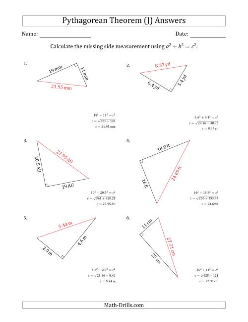 Find the hypotenuse worksheets Hypotenuse pythagorean theorem calculate Calculate the hypotenuse using pythagorean theorem (j)